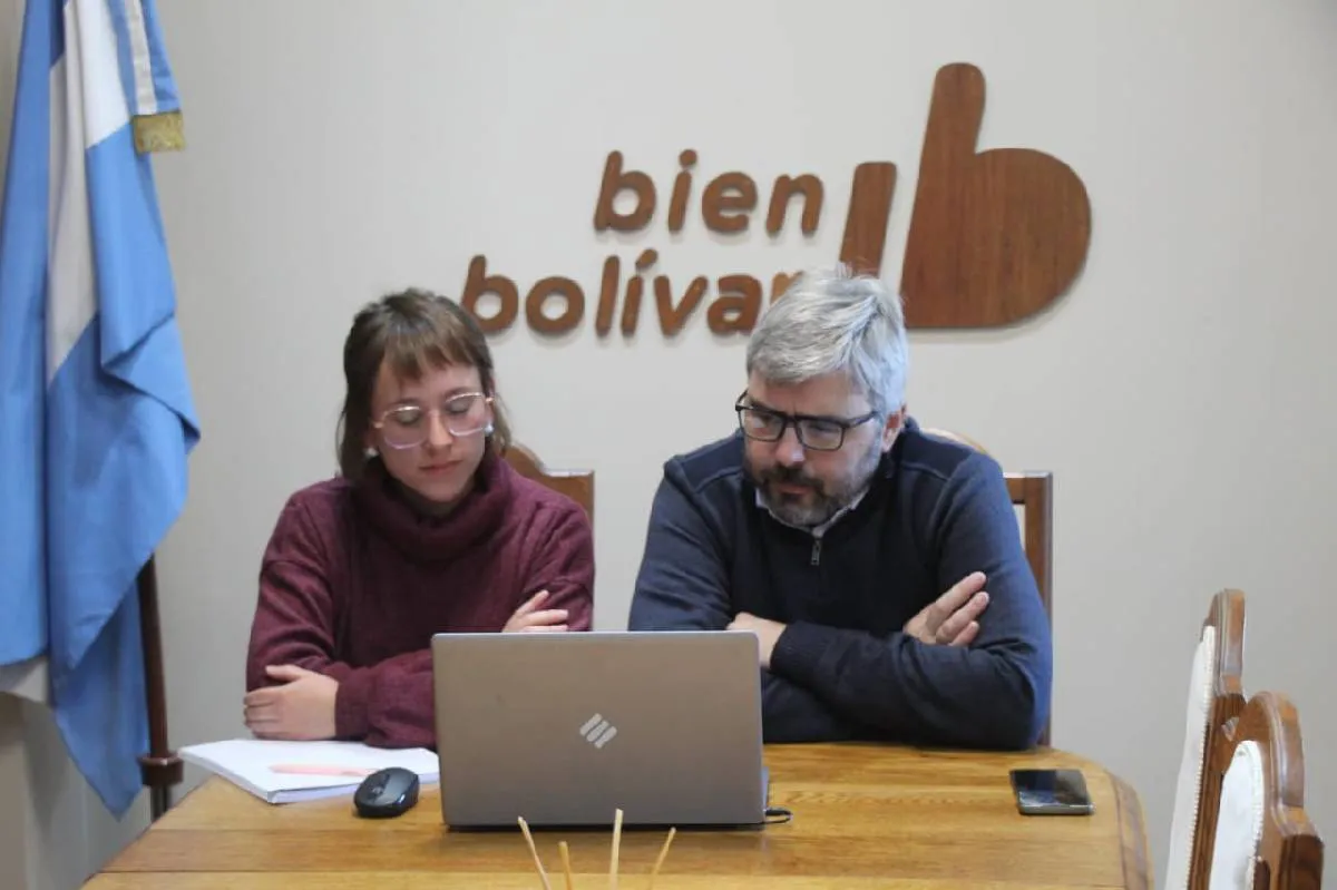 El secretario de Gobierno de Bolívar, Marcos Beorlegui, y la directora de Ambiente y Desarrollo Sustentable, Aldana Tello, participaron en una reunión virtual con representantes del INTA. Durante el encuentro, discutieron proyectos de gestión integral de residuos sólidos urbanos en colaboración con dicha institución.